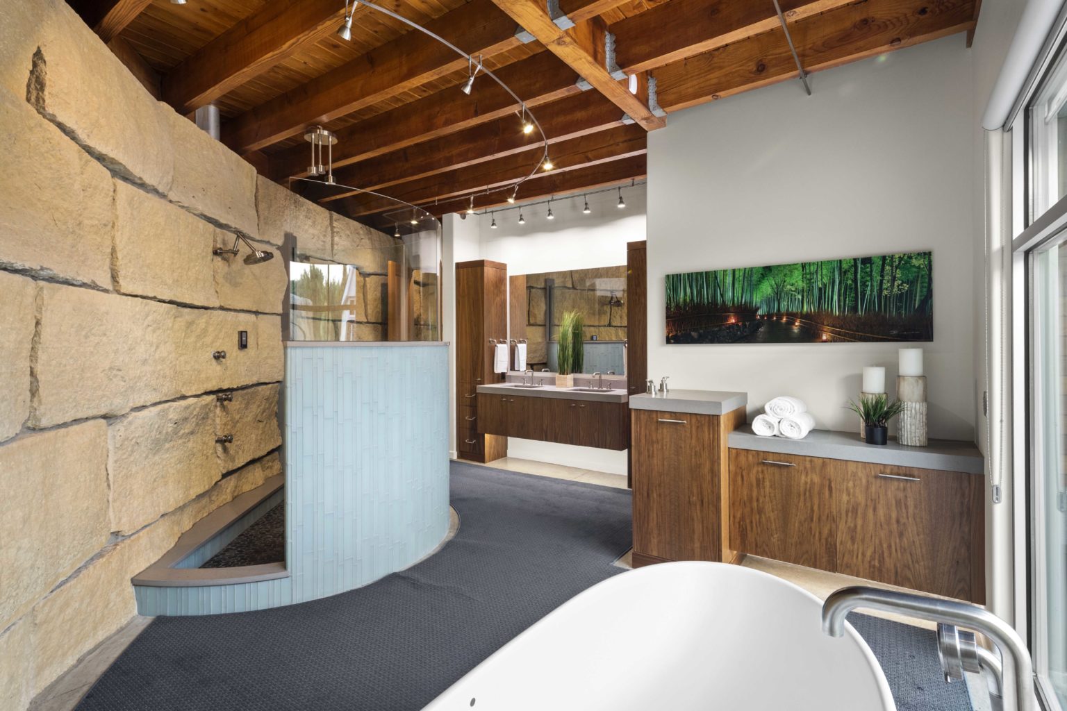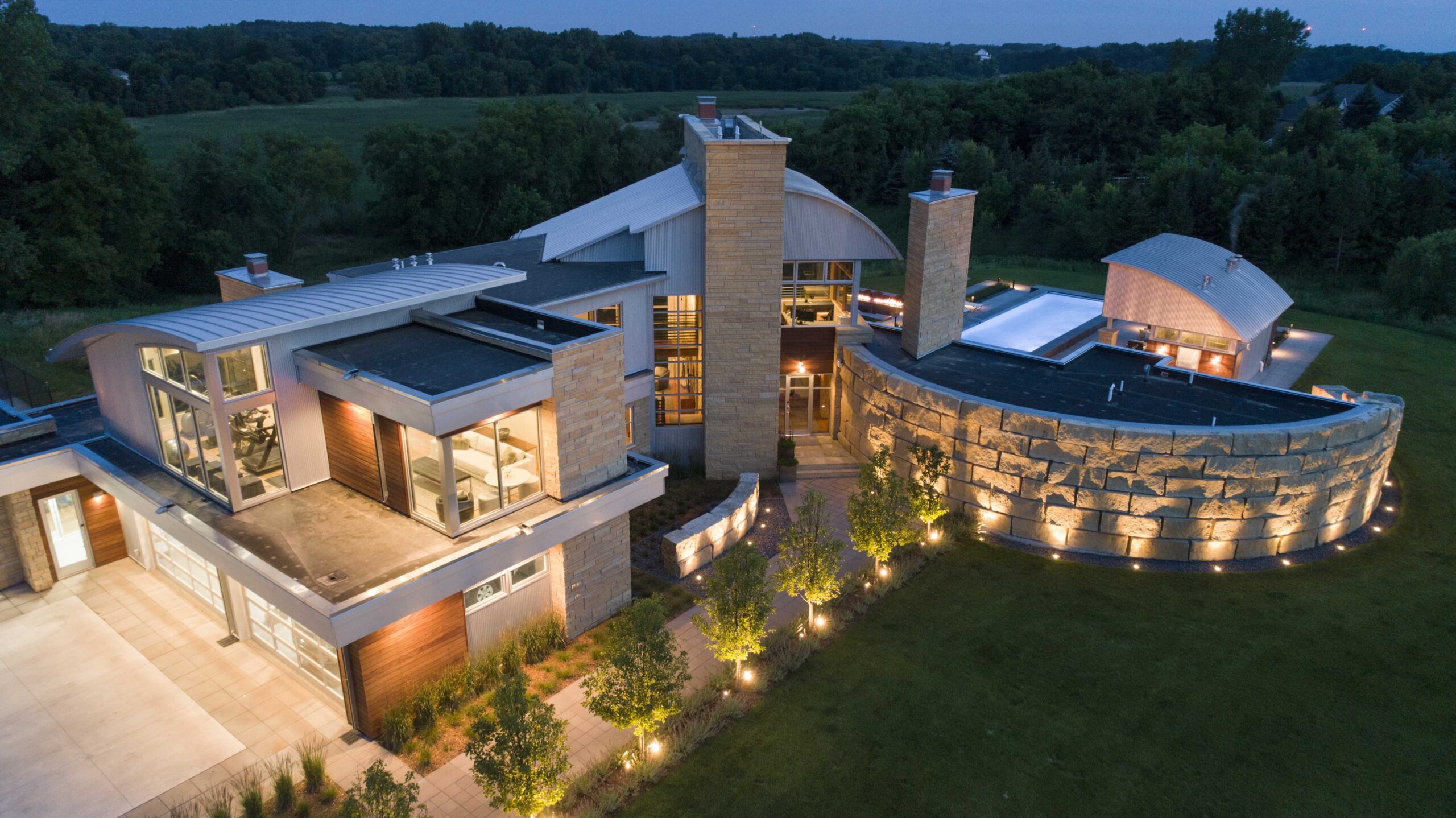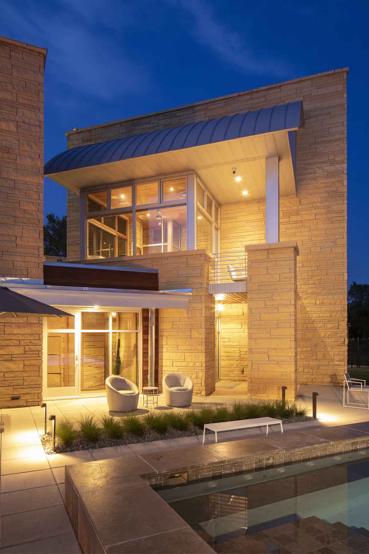 This sprawling, 40-acre property and truly one-of-a-kind two-story glass and limestone house needed to be updated and remodeled to better fit the family’s needs. We designed the addition to tie in seamlessly with the existing architecture.
